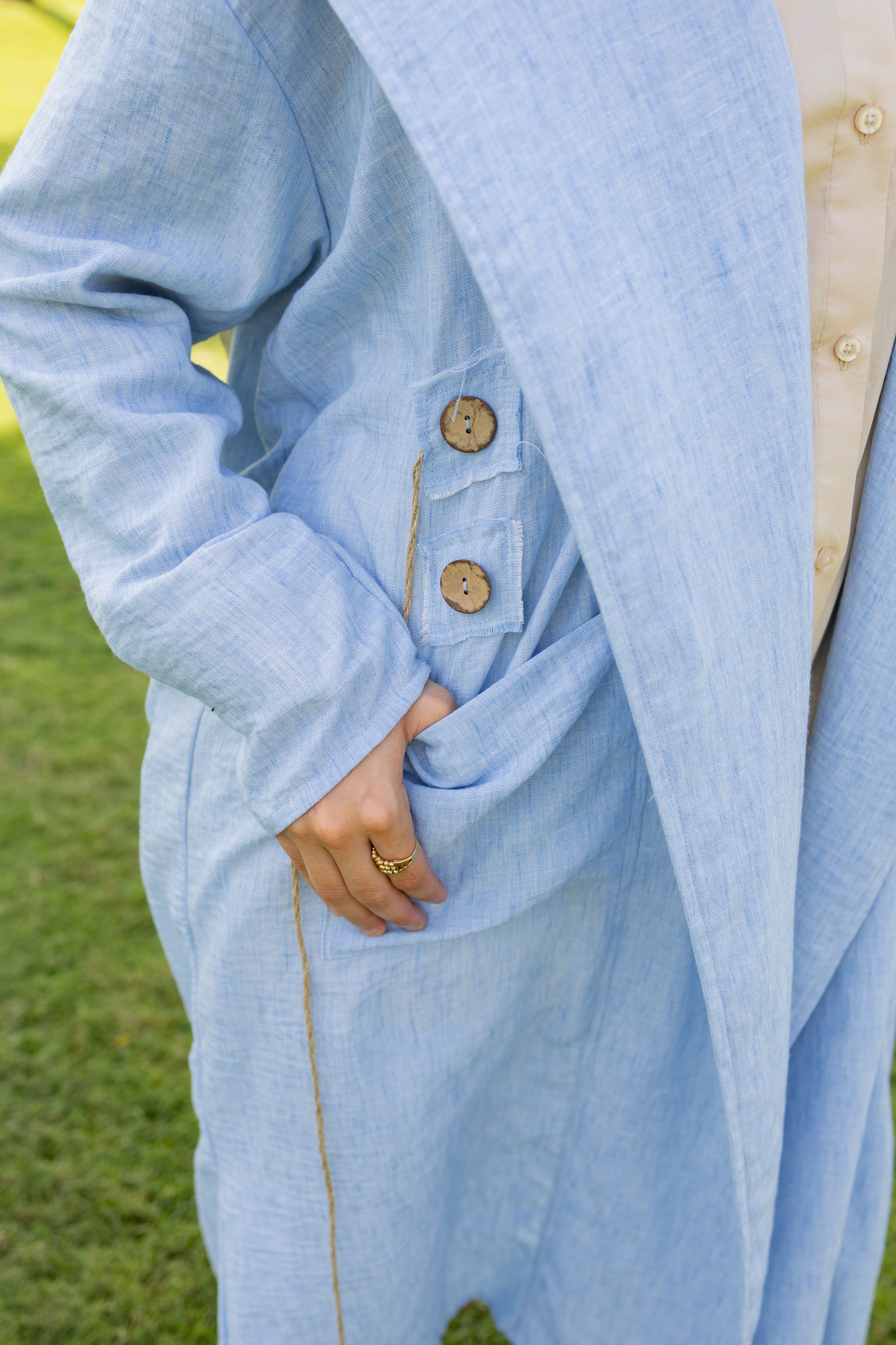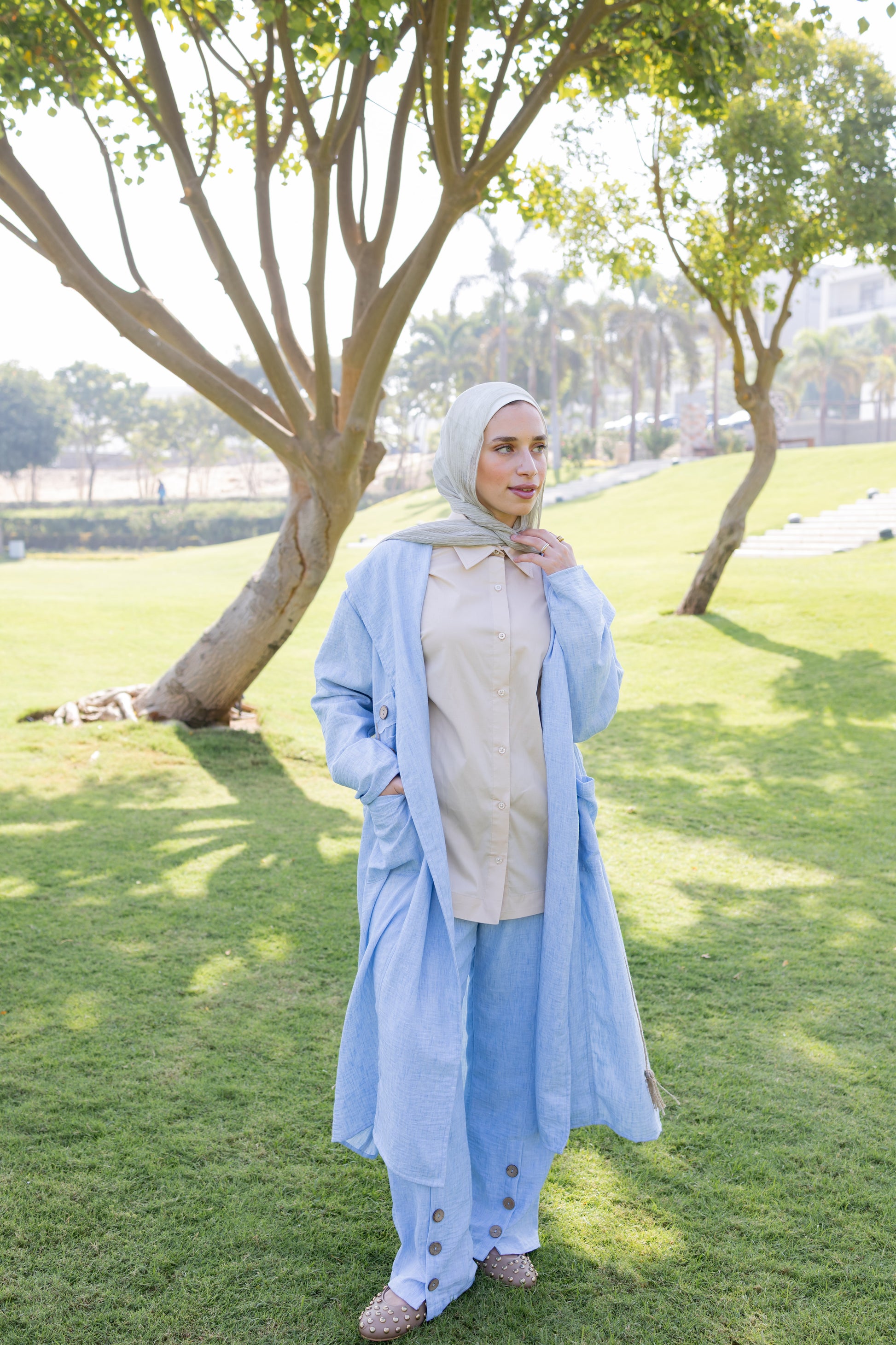 Meet Iris... your go-to layering piece for a modest yet effortlessly stylish look. This lightweight cardigan drapes gracefully over any outfit, offering just the right amount of coverage without feeling bulky. Designed with a relaxed fit, soft textured fabric, and statement button details on the sides, Iris blends minimalism with everyday sophistication.